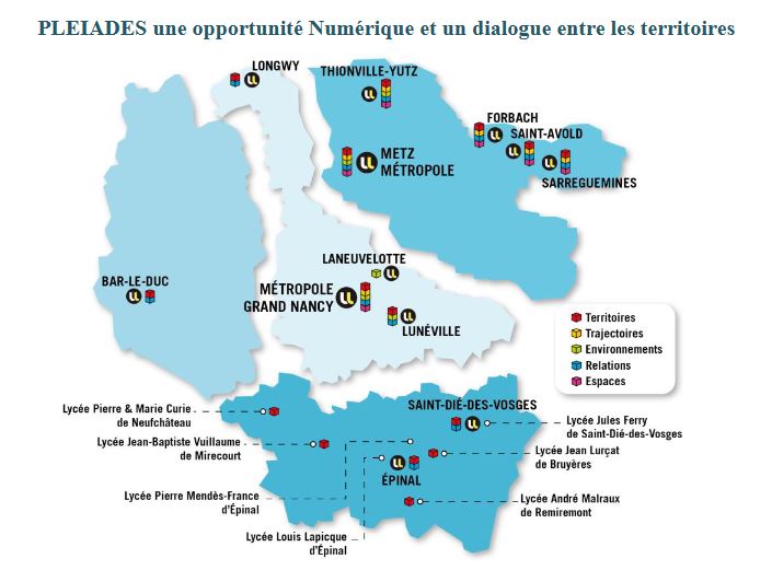 L’UFR Lansad participe au projet PLEIADES – Projet Lorrain d’Environnement numérique pour des Apprentissages Durables – déposé par l’Université de Lorraine (lauréat de l’appel à manifestation d’intérêt Demoes). L’UFR, en collaboration avec le DN, est porteuse du programme PLEIADES-Relations. Il s’agit de dynamiser l’apprentissage des langues par la mise en relation en tandem et e-tandem à travers une plateforme.